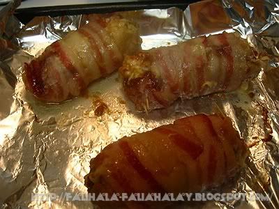 4. 將雞肉卷起成為雞卷(我發覺卷得鬆鬆地讓汁流些出來更好吃);